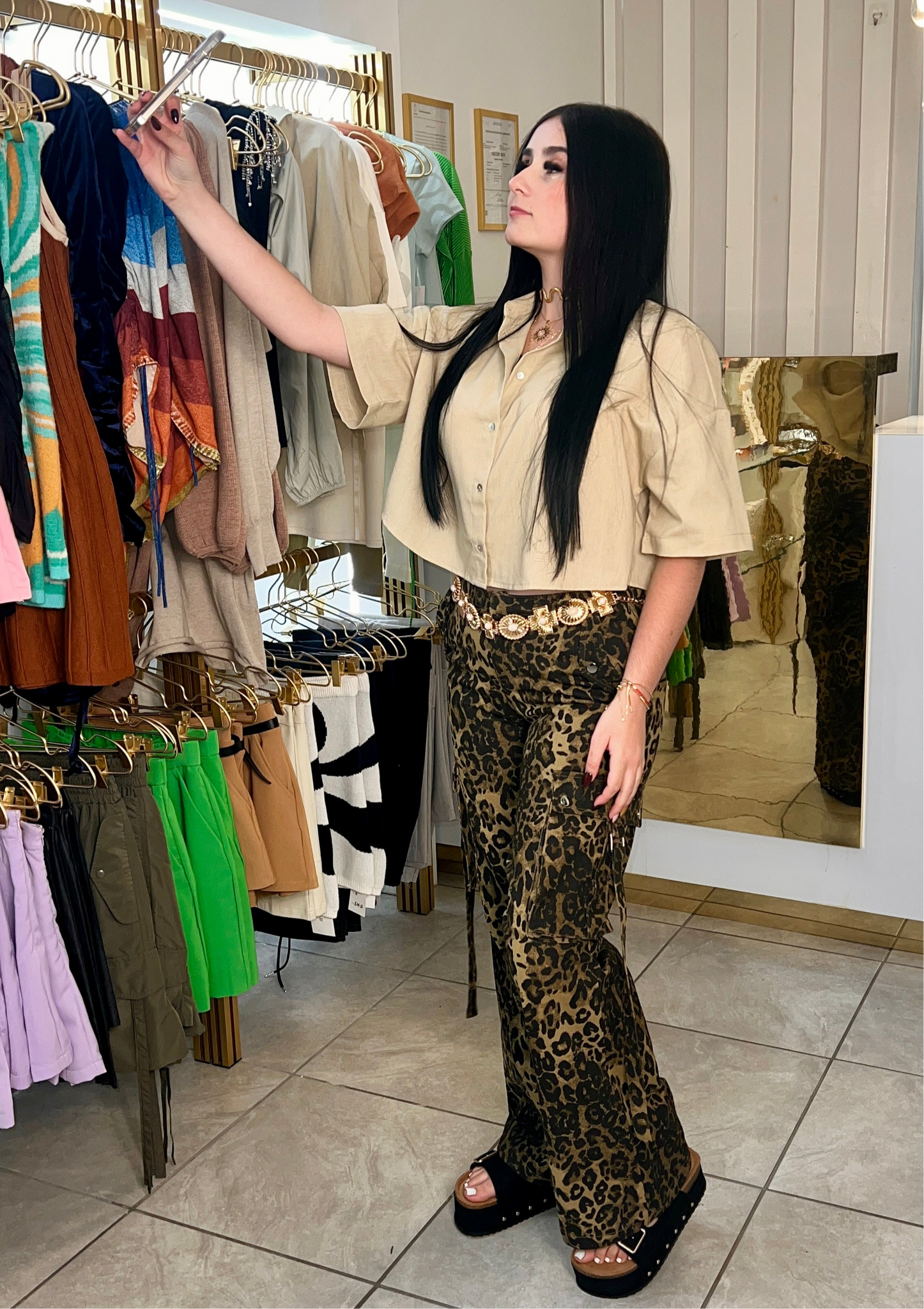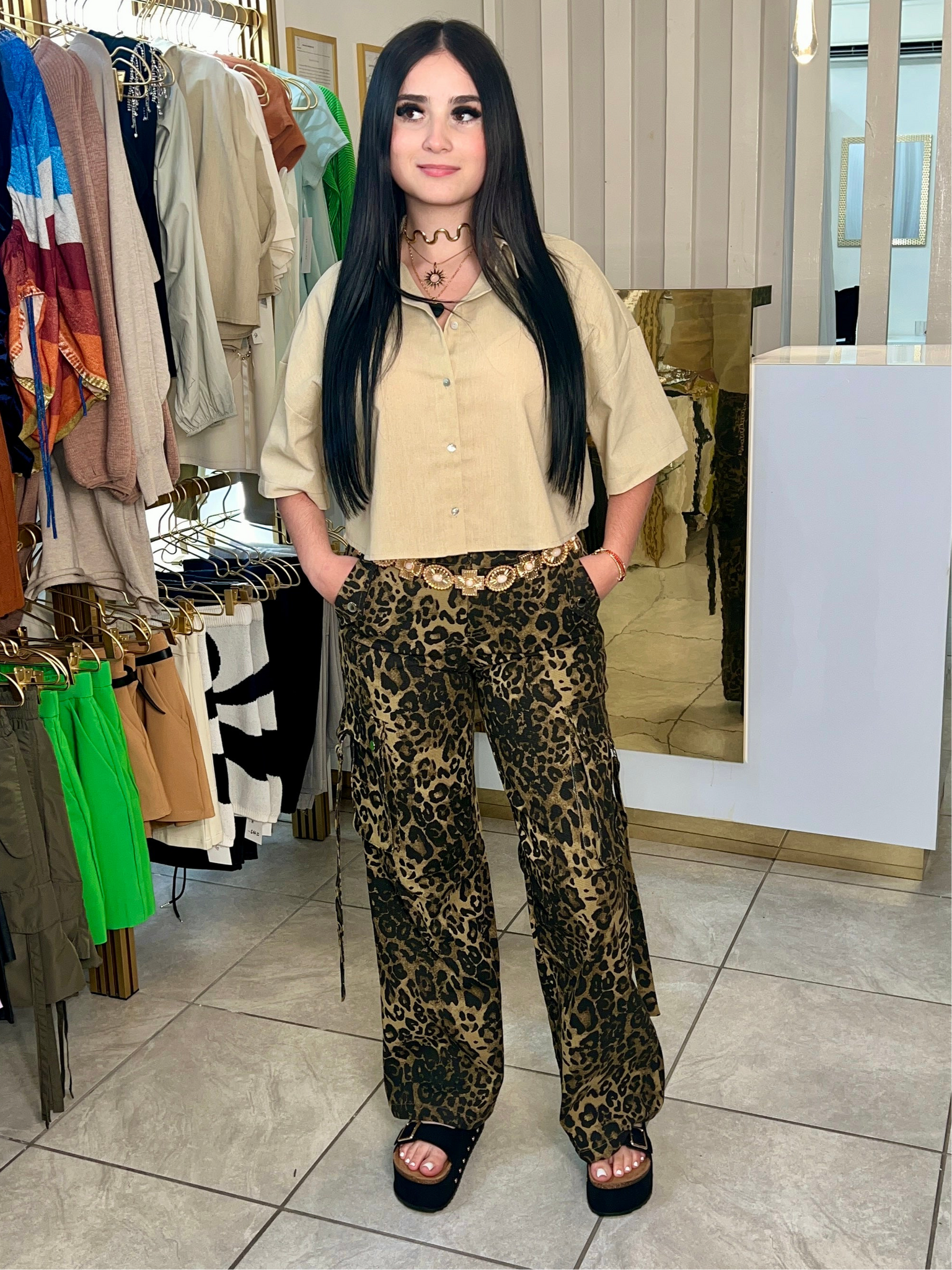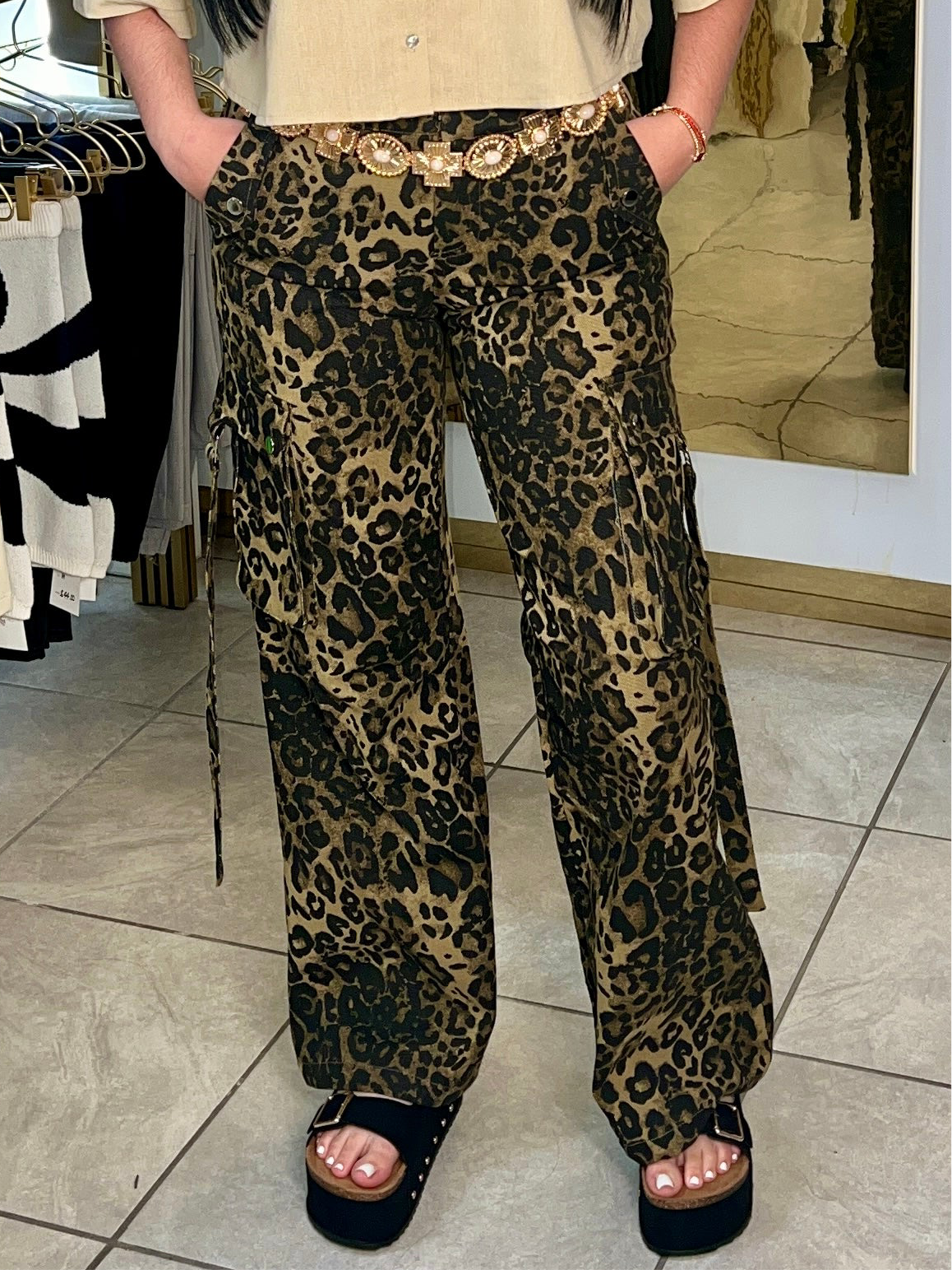 Unleash your wild side with the Singita Cargo, featuring an animal leopard print on durable denim cargo material. Perfect for those who want to stand out from the pack with a touch of playfulness. No stretch means it's made to last, just like your adventurous spirit. Wear it either way sneakers for a festival or a Sunday roadtrip or elevate the look with heel sandals.