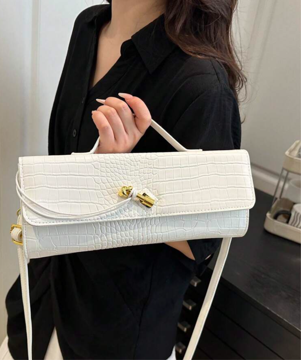 Upgrade your handbag game with the Bottega Clutch. Featuring a versatile design of a white purse clutch, it also comes with a detachable shoulder strap for added convenience. Chic and functional, this clutch is perfect for any occasion. Elevate your style while keeping your essentials close.