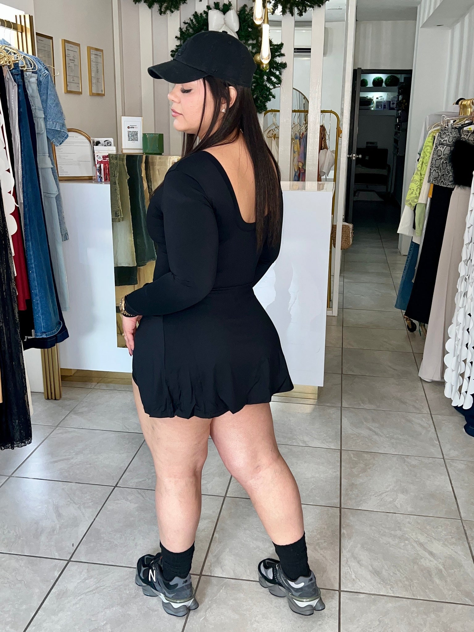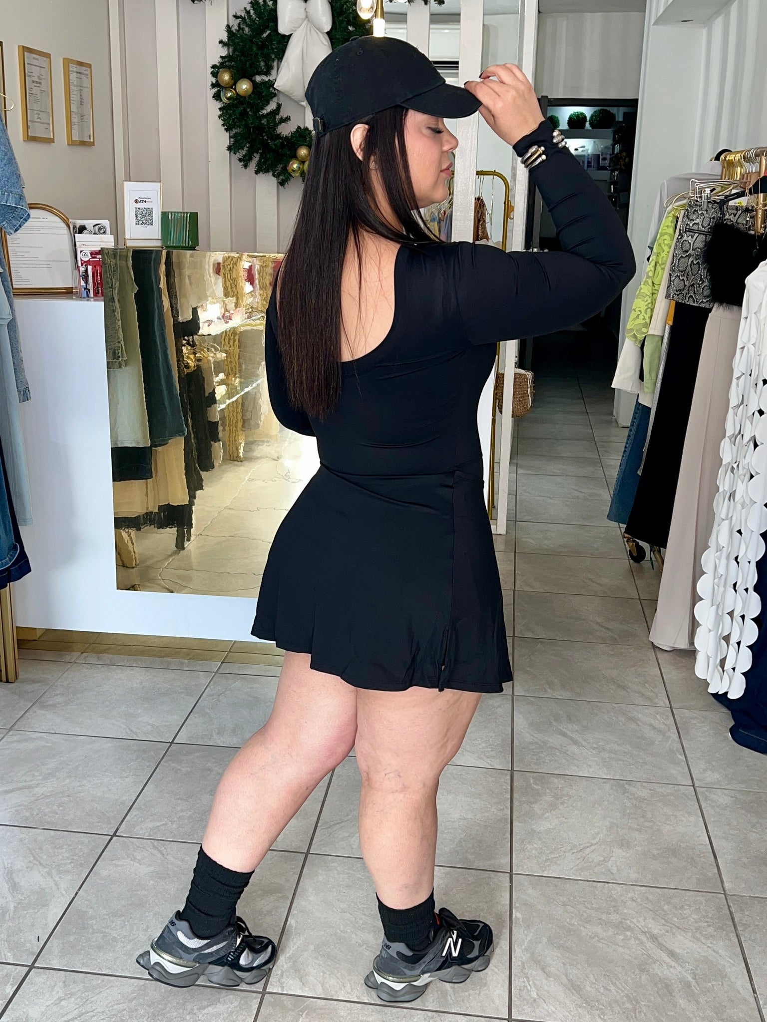 Active wear, romper, long sleeves, dry fit, skort super soft, lightweight 4 way stretch. Comfy and stylish for a fit lifestyle.
